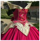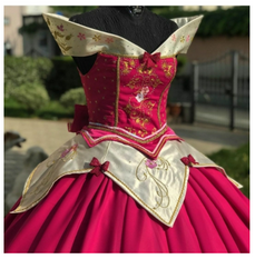 Realizzato in raso pesate e velluto in seta e pizzo.I ricami sono realizzati con macchina ricamatrice. I decori con perline sono realizzati a mano. Compreso di sottogonna.