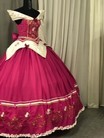 Realizato in tessuto giorgette , raso e velluto in set. Decorato a mano. I ricami sono realizzati con macchina ricamatrice. Compreso di sottogonna.