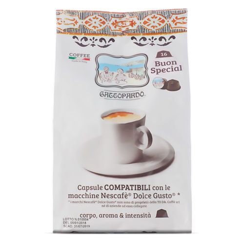 Confezione da 16 cialde Buon Cappuccino Gattopardo compatibili con macchine da caffè Nescafé Dolce Gusto.